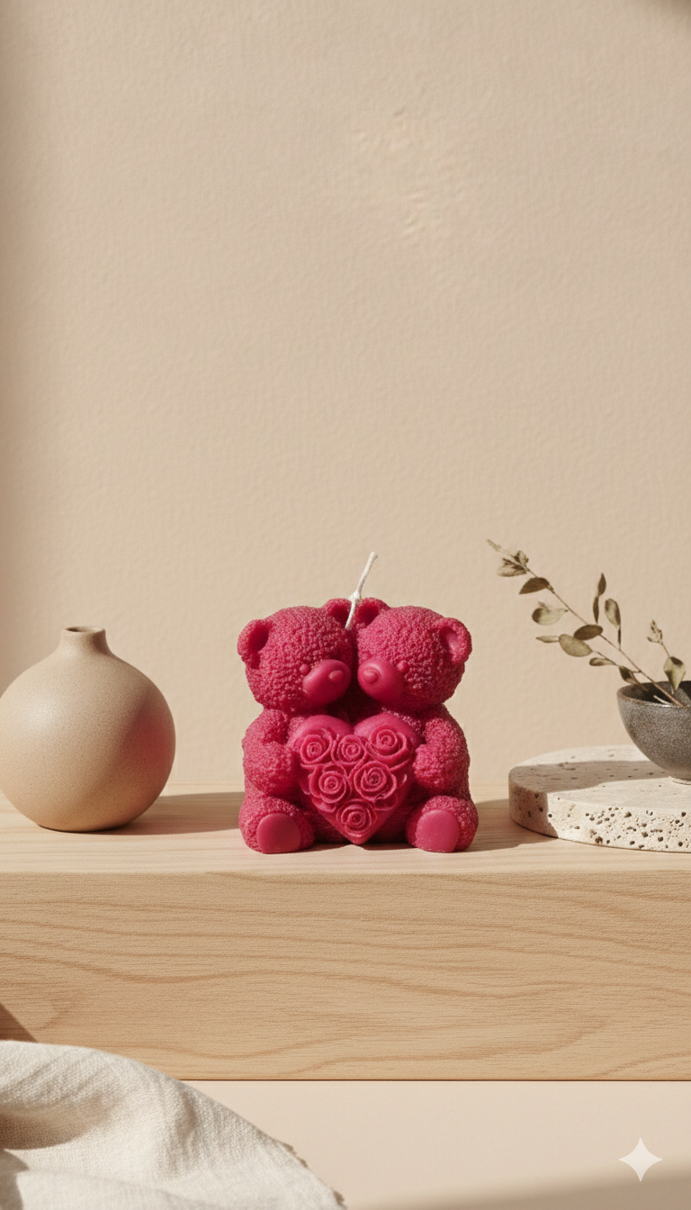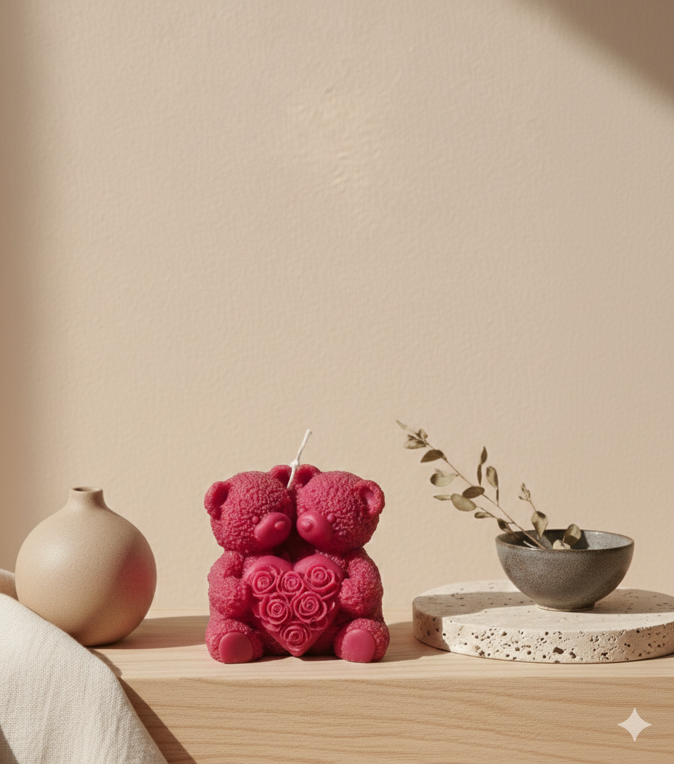 Elegance in Bloom: Rose-Petal Teddy Bear Candle